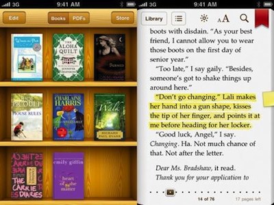 Moreover, you can do that in iBooks too, thanks to the recent update by Apple. Go this way to put a PDF file in your iBooks shelf: