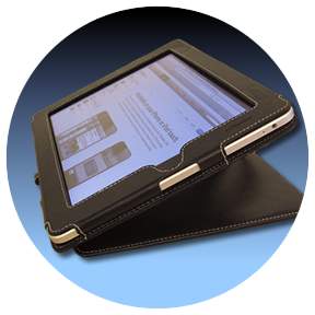 The Security Case for iPad features black leather construction with a two-digit combination lock.